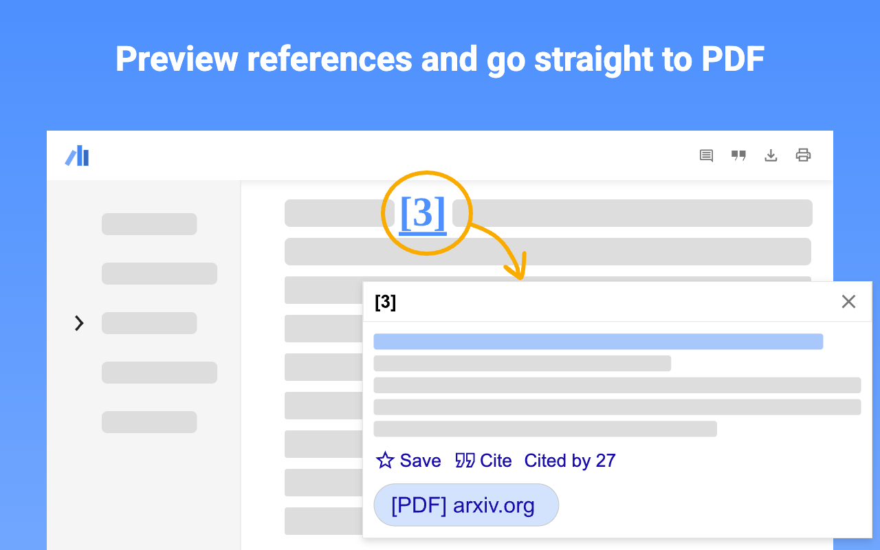 这个功能真的非常好用,尤其是在阅读论文时需要频繁查看引用文献的情况下。只需将鼠标悬停在引用上,就能快速查看引用文献的摘要和相关信息,极大地提高了阅读效率。